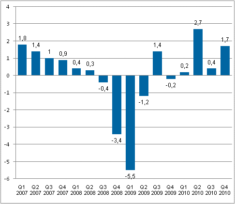 Lähde: Kansantalouden tilinpito 2010 (ennakko) ja neljännesvuositilinpito 2010, 4. vuosineljännes. Tilastokeskus