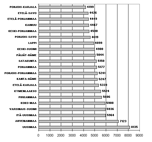 Lähde: Valtion verotulot maakunnittain 2000. Tilastokeskus (ei paperijulkaisua)