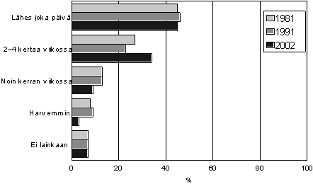 Lähde: Yksilöllisiä valintoja, kulttuurien pysyvyyttä. Vapaa-ajan muutokset 1981-2002. Tilastokeskus.