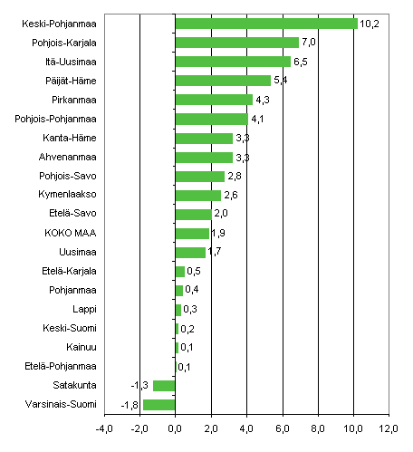 Keski-Pohjanmaa ja Pohjois-Karjala kasvun kärjessä