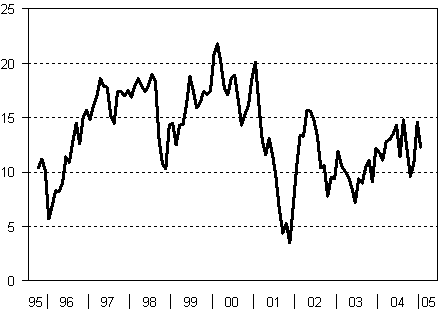 | January 2005 balance figure | December 2004 balance figure | January 2004 balance figure | Average 10/95-1/05 | |||||