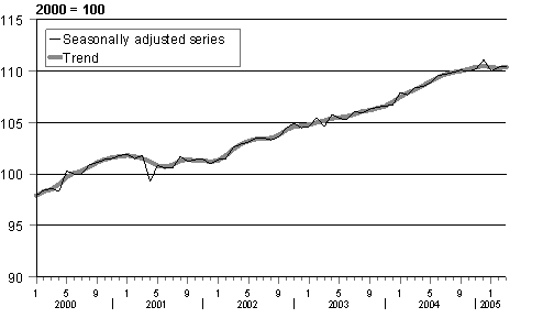 Volume of GDP in 1995-2005, trend and seasonally adjusted series
