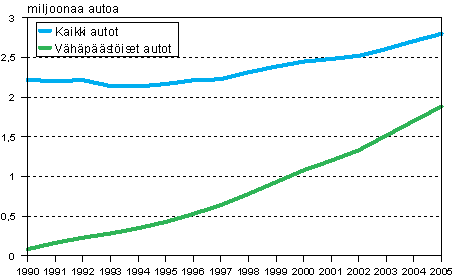 Vähäpäästöiset autot vuosina 1990 - 2005