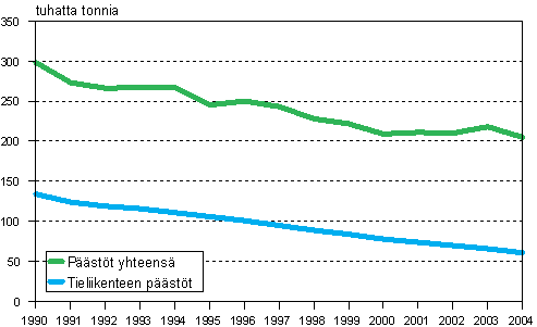 Typen oksidien päästöt vuosina 1990 - 2004