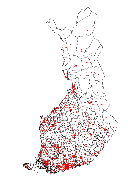 Befolkningen i Finland koncentreras allt mer till tätorterna. Enligt Statistikcentralen bodde 4 388 000 personer, dvs. 84 procent av finländarna, i slutet av år 2005 i tätorter. Folkmängden i tätorterna ökade med 124 000 personer, dvs. med 2,9 procent från år 2000 till år 2005. Antalet tätorter uppgick till totalt 745 och deras landareal var totalt 7 169 km2. Fyra av fem finländare bodde således inom ett område på bara 2,4 procent av den totala landarealen i Finland.