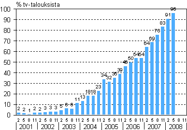 Suomen vajaasta 2,5 miljoonasta kotitaloudesta 9 prosenttia ei toukokuussa omistanut ollenkaan televisiota. Viime vuonna digiajan kynnyksellä ilman televisiota oli 5-6 prosenttia talouksista.