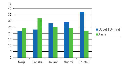 Lähde: International Sourcing, Moving business functions abroad. Tilastokeskus yhteistyössä Tanskan, Ruotsin, Norjan ja Hollannin tilastovirastojen kanssa.