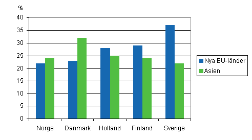 Källa: International Sourcing, Moving business functions abroad. Statistikcentralen i samarbete med statistikbyråerna i Danmark, Sverige, Norge och Holland.