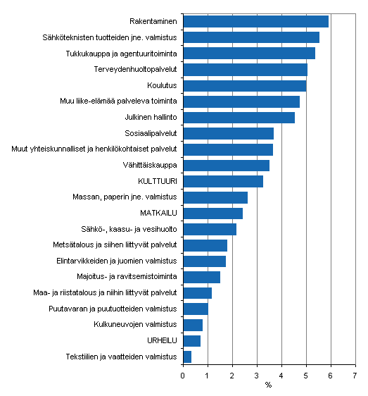 Kulttuurin toimialoista ylivoimaisesti suurin oli sanoma- ja aikakauslehdet ja uutistoimistot -toimialaryhmä, joka kattoi lähes neljänneksen kulttuurin bruttokansantuoteosuudesta. Muun (kuin kirjojen ja lehtien) painamisen ja siihen liittyvän toiminnan osuus oli runsaat 13 prosenttia, radion ja television osuus vajaat 10 prosenttia ja mainonnan osuus lähes 9 prosenttia. Eri taidealojen osuudet olivat näitä pienempiä, mutta kuitenkin myös kansantaloudellisesti merkittäviä.