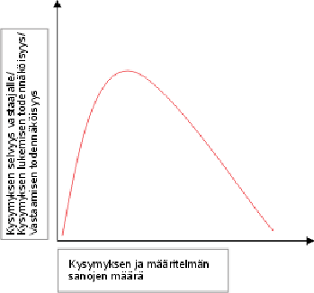 Tämä tarkoittaa lomakesuunnittelijalle kauaskantoisten päätösten tekemistä. Toisaalta tulee taata kysymyksen keskeisen sisällön välittyminen, mutta toisaalta varmistua myös siitä, että kysymystä ja siihen kuuluvia ohjeita ei lueta ylimalkaisesti tai ohiteta kokonaan. Oheisessa kuviossa hahmotetaan lomakesuunnittelijan tilannetta tällaisessa päätöksentekotilanteessa. Toki kukin tiedonkeruu on omanlaisensa, mutta yleisenä havaintona tekemissäni itse täytettävien lomakkeiden testaamisissa yllä oleva kuvio pätee melko hyvin. Ideaalitilanteessa ollaan käyrän huipulla.