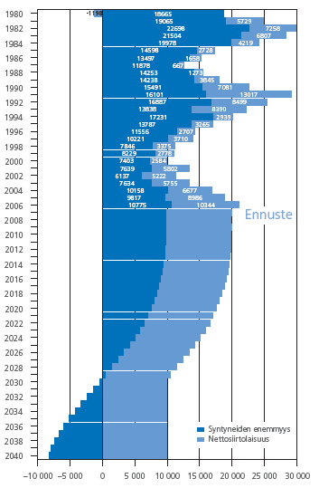 Väkiluvun muutostekijät 1980-2006 ja ennuste 2007-2040