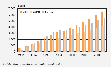 Kuvio 1. Bruttokansantuote asukasta kohden käyvin hinnoin vuosina 1992-2005