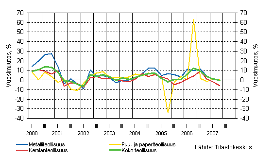 Teollisuuden suhdannetilanne oli vuoden 2007 toisella neljänneksellä edelleen hyvä. Teollisuusyritysten sekä kotimaan että vientiliikevaihto kasvoivat koko alkuvuoden, joskin kasvuvauhti hieman hidastui toisella neljänneksellä. Myös vientihinnat olivat edelleen korkealla tasolla. Suomen talous oli hyvässä kunnossa. Teollisuuden työllisyyskin kehittyi myönteisesti varsinkin vuoden toisella neljänneksellä. Niin ikään tehdasteollisuuden kapasiteetin käyttöaste lähenee vuoden 2000 huipputasoa.