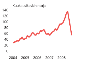 laskussa. Raakaöljyn maailmanmarkkinahinta lähti jyrkkään laskuun