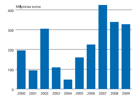 Kuvio 1. Valtion toimien vaikutus kuntien talouteen 2000-2009