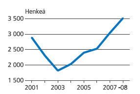 | Määrä 2008 | Kasvu 2008 | Kasvu 2000-08 | |