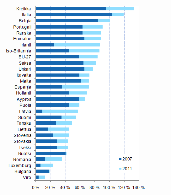 Julkisen velan tasoerot suuria, kriisi pahentaa