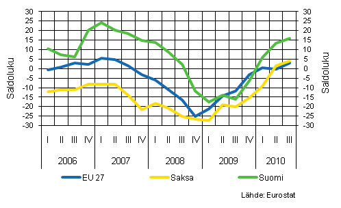 Luottamusindikaattorin saldolukujen taso on ollut Suomessa jo usean vuoden ajan korkeampi kuin EU:n alueella keskimäärin, mutta nyt luottamus on vahvistunut myös Saksassa ja vähittäiskaupan yritykset arvioivat myynnin kasvun jatkuvan sielläkin.