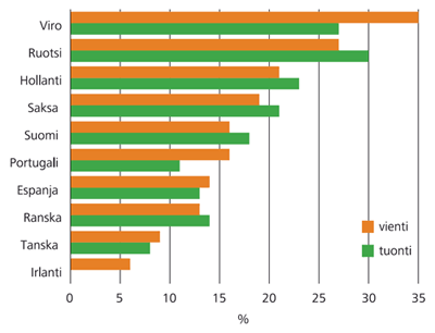 Maailmantalouden kohentuminen on saanut ulkomaankaupan ripeään kasvuun monissa maissa. EU-maissa ulkomaankauppa piristyi vuosina 2009–2010 kuitenkin hyvin vaihtelevasti.