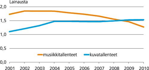 Sen sijaan kuvatallenteiden lainaus on kasvanut hiukan koko 2000-luvun ajan.