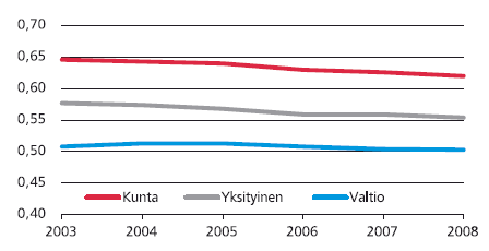 ID-indikaattori työmarkkinasektoreittain 2003–2008
