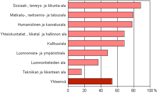 Naisten osuus ammattikorkeakouluopiskelijoista koulutusaloittain (opetushallinnon luokitus) 2004