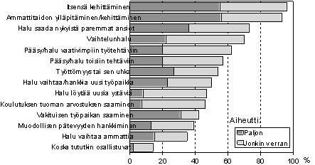 Ammattiin tai työhön liittyvään lisäkoulutukseen menosta oli kiinnostunut kaksi kolmasosaa työvoimaan kuuluvista. Eniten koulutuskiinnostusta herättivät ammattitaidon ylläpitämiseen ja kehittämiseen liittyvät syyt. Vuonna 1995 myös työttömyys tai sen uhka nousi yhdeksi tärkeimmistä koulutushalukkuuden syistä.