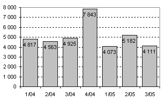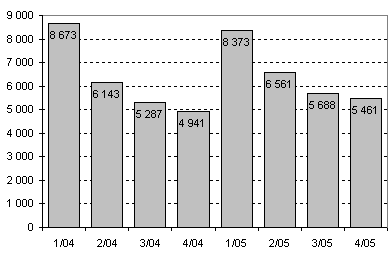 Lähde: Yritys- ja toimipaikkarekisteri, Aloittaneet ja lopettaneet yritykset. Aloittaneet yritykset 2005, 4. neljännes; lopettaneet yritykset 2005, 3. neljännes. Tilastokeskus