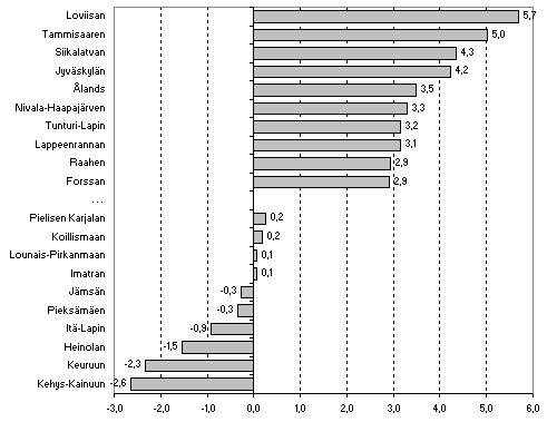Uusien yritysten määrä lisääntyi eniten Uudellamaalla (622) ja väheni eniten Kymenlaaksossa (-78). Lopettaneiden yritysten määrä lisääntyi eniten Pohjois-Pohjanmaalla (119) ja väheni Uudellamaalla (-715). Suhteellisesti eniten aloittaneiden yritysten määrä lisääntyi Ahvenanmaalla (32,7 %) ja väheni eniten Kymenlaaksossa (-10,3 %). Suhteellisesti eniten lopettaneiden yritysten määrä lisääntyi Ahvenanmaalla (34,2 %) ja väheni Uudellamaalla (-9,3 %).