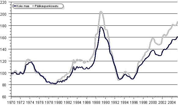 - Kerrostaloasuntojen hintaindeksi 2000=100 vuodesta 1987 alkaen (29.7.2005)