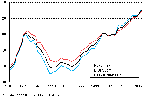 Kerrostaloasuntojen hintaindeksi 2000=100 vuodesta 1987 alkaen