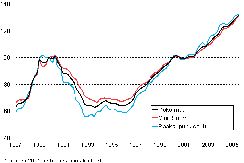Rivitaloasuntojen hintaindeksi 2000=100 vuodesta 1987 lähtien
