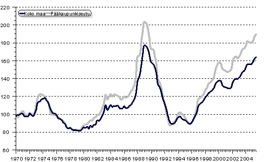 - Kerrostaloasuntojen hintaindeksi 2000=100 vuodesta 1987 alkaen (31.10.2005)