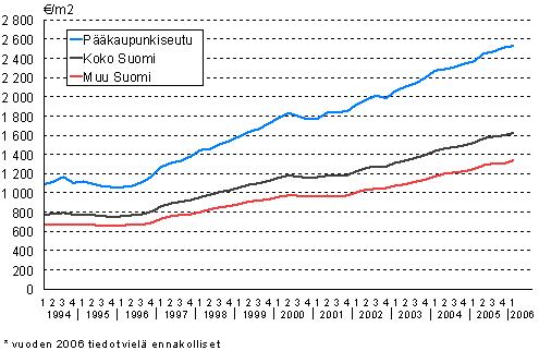 Rivitaloasuntojen keskimääräiset neliöhinnat 1994-2006/1