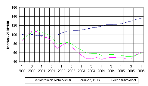 Uusien asuntolainojen korko oli vuoden 2006 ensimmäisellä neljänneksellä keskimäärin 3,36 %. Edellisellä neljänneksellä vastaava korko oli 3,16 % ja vuotta aiemmin se oli 3,12 %