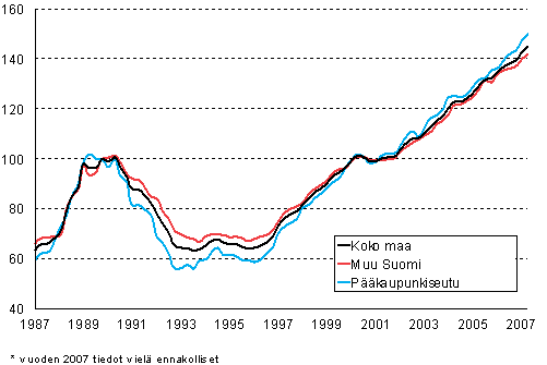 Rivitaloasuntojen hintaindeksi 2000=100 vuodesta 1987 lähtien