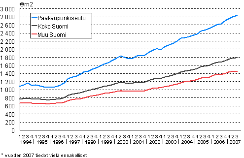 Rivitaloasuntojen keskimääräiset neliöhinnat 1994-2007/3