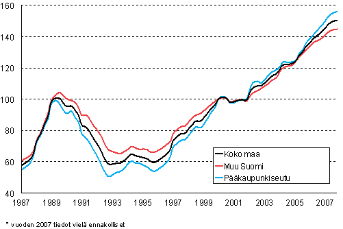 Kerrostaloasuntojen hintaindeksi 2000=100 vuodesta 1987 alkaen