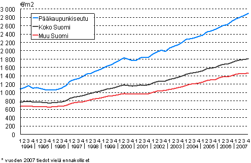 Rivitaloasuntojen keskimääräiset neliöhinnat 1994-2007/4