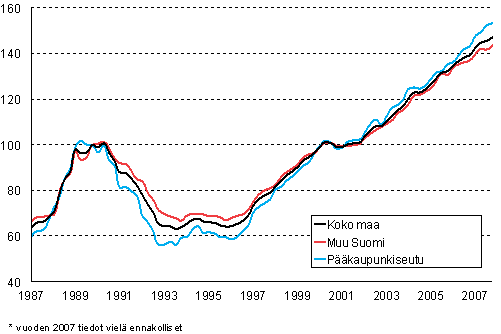 Rivitaloasuntojen hintaindeksi 2000=100 vuodesta 1987 lähtien