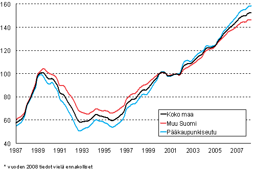 Kerrostaloasuntojen hintaindeksi 2000=100 vuodesta 1987 alkaen
