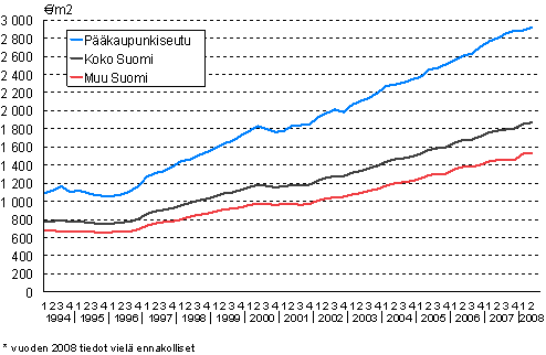 Rivitaloasuntojen keskimääräiset neliöhinnat 1994-2008/2