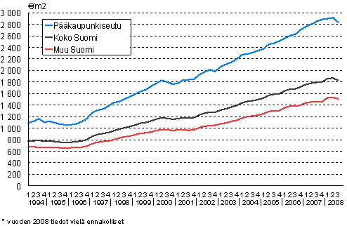 Rivitaloasuntojen keskimääräiset neliöhinnat 1994-2008/3