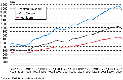 Kerrostaloasuntojen keskimääräiset neliöhinnat 1994-2008/4