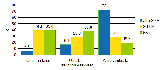 Kolme neljästä alle 30-vuotiaiden taloudesta asui vuokralla