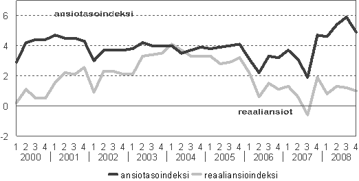 Ansiotasoindeksin ja reaaliansioiden vuosimuutos