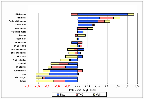 Lähde: Aluetilinpito 1975-2005*. Tilastokeskus; Eurostat 13.4.2007