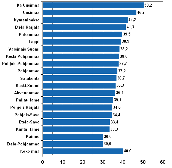 Itä-Uudellamaalla bruttokansantuotetta syntyy työtuntia kohti 1,7 kertaa enemmän kuin Etelä-Pohjanmaalla ja Kainuussa. Tiedot perustuvat aluetilinpidon tietoihin.