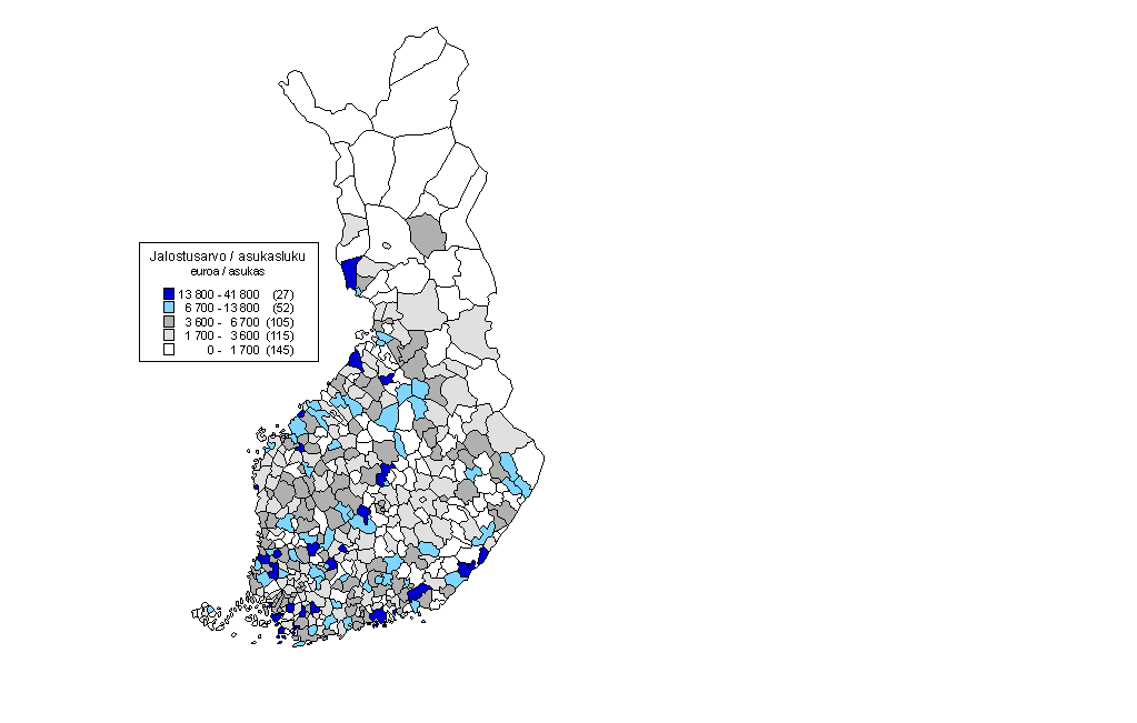 Jalostusarvo asukasta kohti koko teollisuudessa kunnittain vuonna 2004