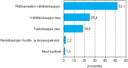 Autokaupan liikevaihdon prosenttiosuus (%) tuotteittain toimialalla polttoaineiden vähittäiskauppa 5050